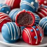 Celebrate with these festive Patriotic Oreo Balls, a delicious no-bake treat combining crushed Oreo cookies and smooth cream cheese, coated in vibrant red and blue candy melts, and decorated with white star sprinkles and drizzle. Perfect for parties, holidays, or anytime you want a sweet, crowd-pleasing dessert with a patriotic flair.