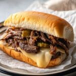 6. Assemble Sandwiches: Fill each toasted roll with the cheesy steak and vegetable mixture, serving immediately while hot and melty.