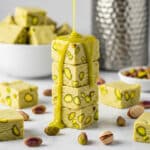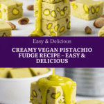 Keywords: pistachio fudge, vegan fudge, no-bake fudge, pistachio dessert, vegan white chocolate fudge