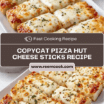 Enjoy the comforting, cheesy delight of homemade Pizza Hut Cheese Sticks. Soft, buttery breadsticks topped with melted mozzarella and parmesan, seasoned perfectly and served with marinara for dipping. A perfect snack or appetizer to satisfy your cravings.