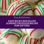 These Rich Chocolate Almond Truffles are elegant, easy-to-make treats perfect for gifting or enjoying at home. Made with high-quality milk chocolate, heavy cream, and finely chopped almonds, these no-bake truffles are coated in smooth white chocolate and finished with festive red and green candy melt drizzles. The ganache base is chilled and rolled into perfectly sized balls, providing a creamy, luscious texture that melts in your mouth. Ideal for holiday parties or special occasions, these truffles require minimal ingredients and no special equipment, making them accessible and impressive.