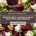 A vibrant and nutritious Roasted Beet & Arugula Salad featuring tender roasted beets, peppery arugula, creamy feta cheese, and crunchy toasted walnuts, all tossed in a tangy balsamic honey dressing. Perfect as a light lunch or a colorful side dish.