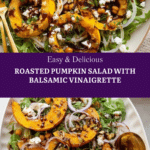 Keywords: roasted pumpkin salad, autumn salad, balsamic vinaigrette, vegan salad, winter squash salad, healthy fall recipe
