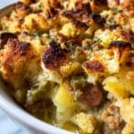 Keywords: sausage stuffing, apple stuffing, holiday side dish, baked stuffing, savory apple stuffing