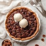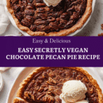 This secretly vegan chocolate pecan pie is a rich, gooey dessert that’s free from eggs, dairy, and corn syrup. It’s made with a flaky vegan pie crust and a luscious filling of toasted pecans and dark chocolate, perfect for holiday gatherings or any special occasion.