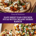 This vibrant sheet pan chicken pita recipe combines juicy roasted chicken and colorful peppers with a creamy, fresh herby ranch sauce. Perfect for a quick weeknight dinner, these pitas are loaded with flavor and easy to assemble.