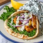 - Assemble the Shawarma Pitas: Fill warm pita bread with the shredded chicken, prepared yogurt sauce, sliced red onion, fresh lettuce, cucumbers, and tomatoes for a delicious and balanced meal.