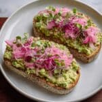 This vibrant and nutritious Smashed Edamame Toast features a creamy, chunky spread made from tahini, edamame, avocado, and fresh herbs, topped with hemp seeds and optional tangy sauerkraut. It’s a delicious, wholesome option perfect for a quick breakfast, snack, or light lunch, offering a plant-based protein boost with bold flavors and a satisfying texture.