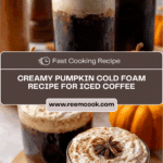 This Smooth Pumpkin Cold Foam recipe creates a luscious, creamy topping perfect for elevating your cold coffee or autumn drinks. Blending heavy cream with pumpkin puree, maple syrup, and pumpkin pie spice, it delivers a rich and fluffy foam with the comforting flavors of fall. Ideal for homemade coffee drinks, this cold foam is easy to whip up and can be stored in the fridge for convenience.