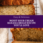 Keywords: Banana bread, sour cream banana bread, moist banana bread, easy banana bread recipe, cinnamon banana bread
