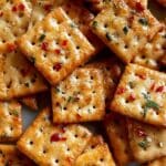 Spicy Ranch Fire Crackers are a flavorful, crunchy snack perfect for game days or casual gatherings. These mini saltine crackers are tossed in a zesty blend of ranch dip seasoning, crushed red pepper, garlic, and dill, then baked low and slow to absorb all the spicy, savory flavors.