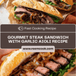 Steak Sandwich with garlic aioli is a deliciously gourmet sandwich featuring tender skirt steak, caramelized onions, and melted provolone cheese. Topped with a creamy homemade garlic aioli, it’s an indulgent meal perfect for dinner or a hearty lunch.