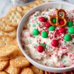 5. Serve: Transfer the dip into a serving bowl and top with additional holiday sprinkles for a festive look. Pair it with pretzels, graham crackers, vanilla wafers, or fresh fruit for dipping.