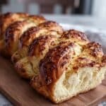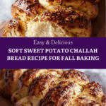 This Sweet Potato Challah Bread recipe combines the traditional braided Jewish bread with the warm, autumnal flavor of roasted sweet potatoes. The mashed sweet potato adds moisture and subtle sweetness, creating a soft, fluffy texture perfect for fall gatherings or festive occasions. The bread is enriched with eggs, honey, and a touch of sugar, then braided and baked to golden perfection with an optional topping of sesame or poppy seeds.