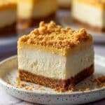 Store the cheesecake squares in an airtight container in the refrigerator for up to 4 days. They can be enjoyed chilled or brought to room temperature before serving. To reheat, let sit at room temperature for 15-20 minutes for best texture; avoid microwaving to preserve the crumble topping.