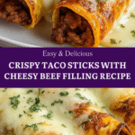 Taco sticks with ground beef and cheese are a fun and delicious twist on classic tacos, perfect for parties or family dinners. These crispy, cheesy rolls are easy to make and packed with flavorful seasoned beef.