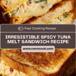 A flavorful and spicy twist on the classic tuna melt sandwich featuring a zesty tuna mixture with cheddar cheese, Sriracha, and fresh ingredients, toasted to golden perfection for a crispy, melty delight.