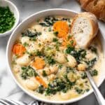 Keywords: vegan chickpea gnocchi soup, vegan soup, gluten free gnocchi soup, creamy vegan soup, plant-based soup, chickpea soup, potato gnocchi soup, dairy free soup