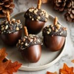 These Vegan Chocolate Brownie Acorns are delightful bite-sized treats combining rich, fudgy vegan brownies with smooth dairy-free chocolate coatings and a crunchy hazelnut topping. Perfect for festive occasions or anytime you crave a chewy, chocolatey snack, these acorns blend espresso-enhanced cocoa flavors with a whipped aquafaba base to create an airy yet dense texture. Finished with a pretzel stick “stem,” they’re as fun to make as they are to eat.