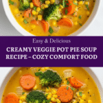 Keywords: vegetable pot pie soup, creamy vegetable soup, pot pie without crust, vegetarian soup, comfort food, easy soup recipe