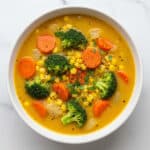 This Veggie Pot Pie Soup offers the cozy flavors of a traditional pot pie without the crust. Packed with hearty vegetables like carrots, potatoes, broccoli, peas, and corn in a creamy, savory broth, this comforting soup is perfect for a warm, satisfying meal any day of the week.